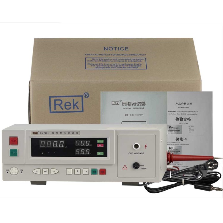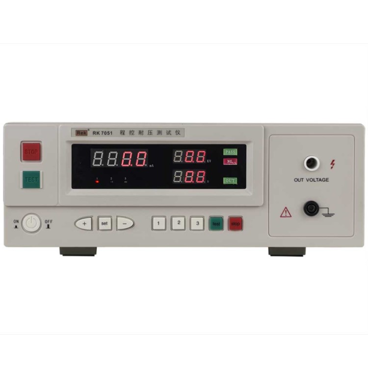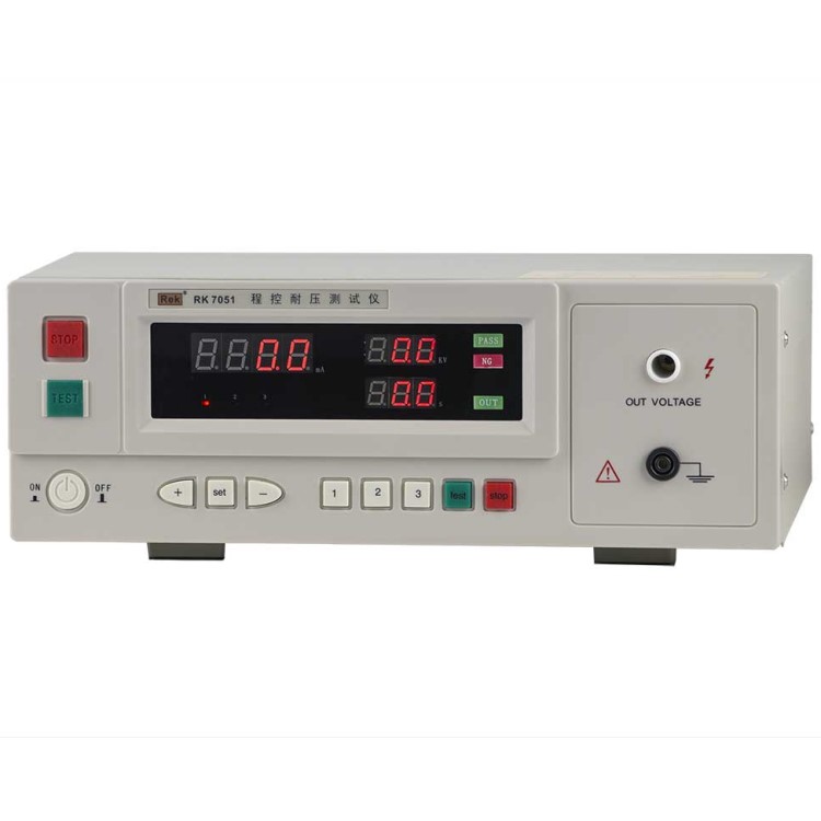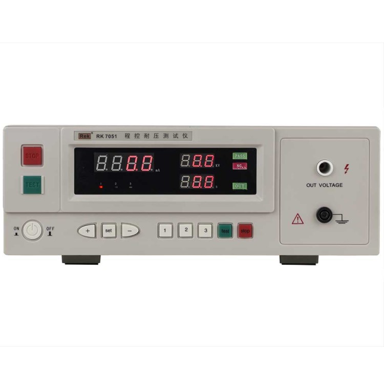 RK7051程控耐壓測試儀是測量耐壓強度的儀器, 可以直觀、準確、快速地測試各種被測對象的擊穿電壓、漏電流等電氣安全性能指標,并可以作為高壓源用來測試元器件和整機性能。